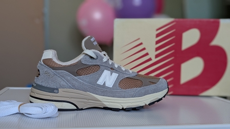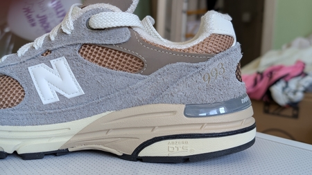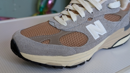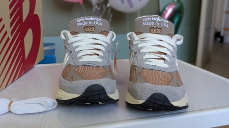 New Balance 993 & Teddy Santis Made in USA Летняя вентилируемая версия. Верх натур материал + полиэстер сетка. Доп пара шнурков. 👉US 9 (длина стельки замер 27.6 см). 👉Цена: 13490 руб